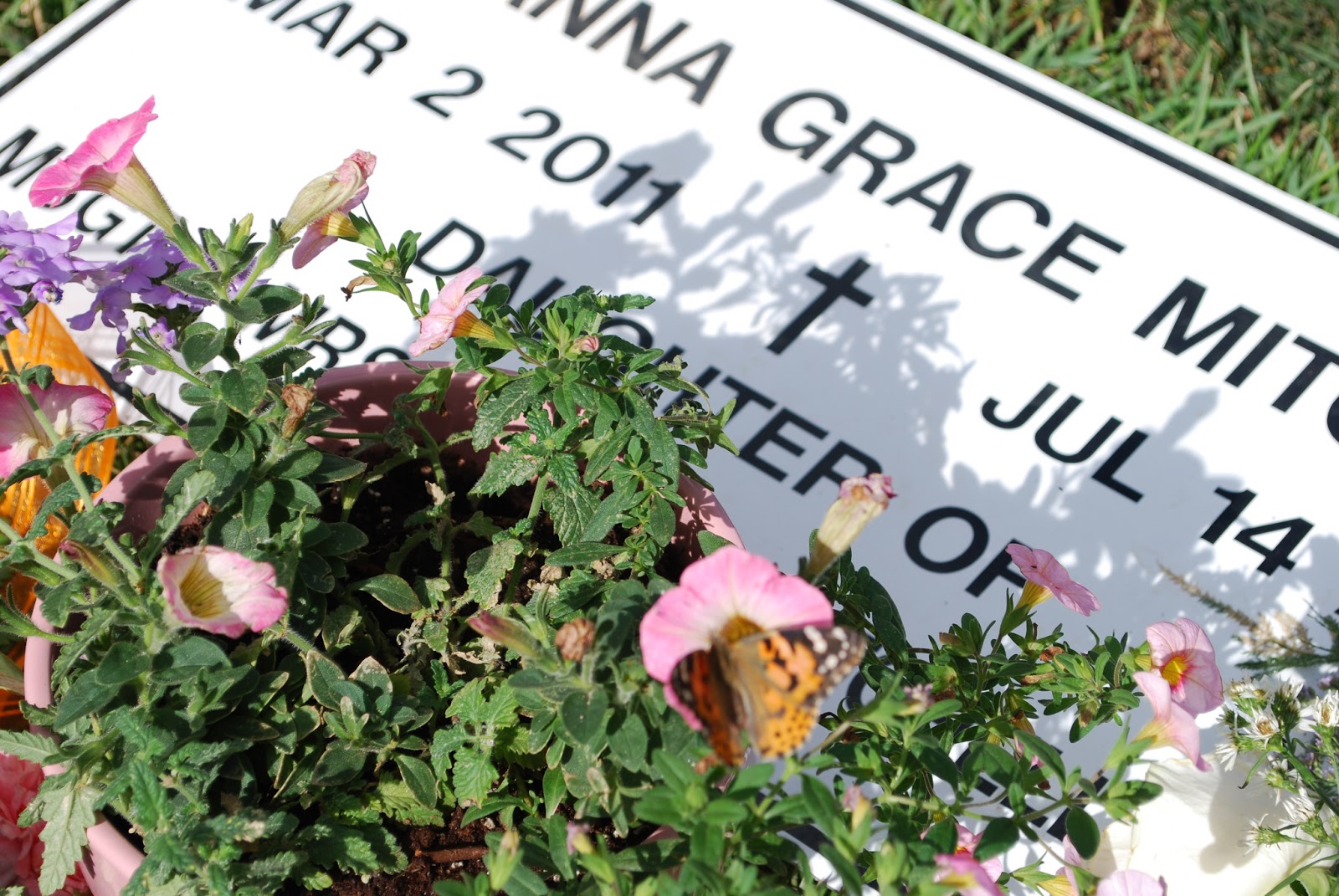 Today we will go to the Butterfly Pavilion, to marvel at the beautiful creatures that always remind us of you. We will visit your grave and bring you pretty flowers, and help your baby brother release his first balloon for you. We will cry tears from the deepest gashes of our grief, and then we will hold each other close and we will press on another day, because we know each day brings us closer to kissing your sweet face again.