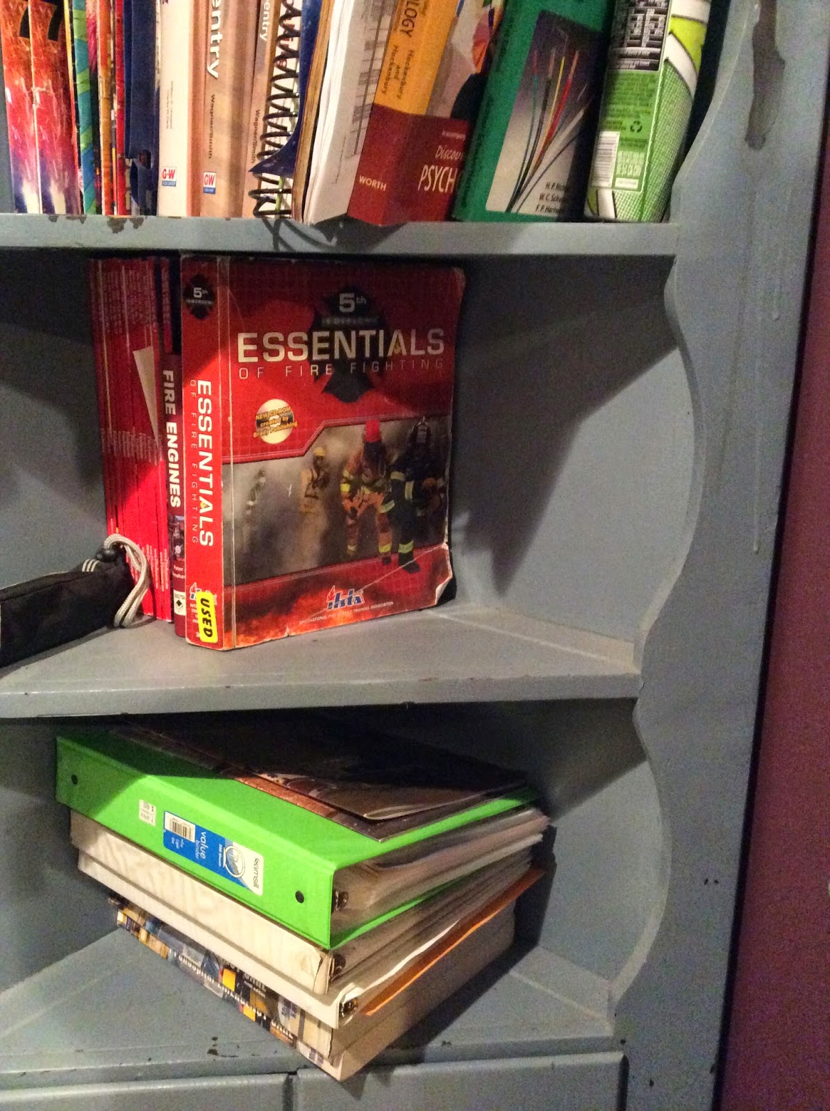 The cluttered bookcase where his firefighter books slumped, tattered by his earnest ambition to one day brave the hot flames and quench to victory its fiery talons. The pulse of his passion for fire now blood-drained, left slouching in frayed pages of blank words.