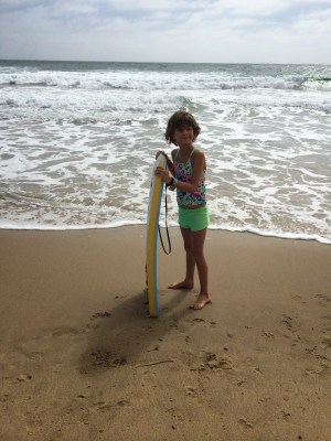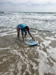 We had so much fun! Baylie and I were the only ones brave enough to get out deep enough for the big waves, but everybody sort of tried it at least once, even Bella just barely gliding on it while I strapped it to my foot.