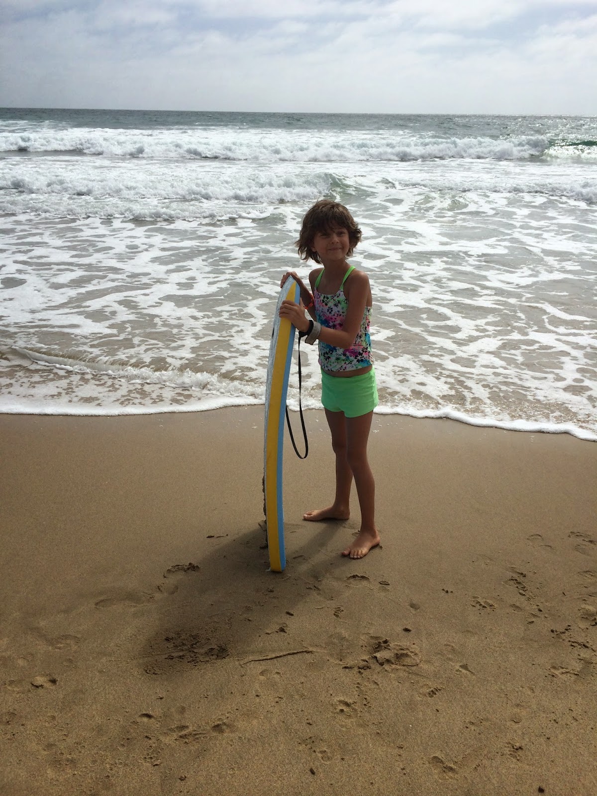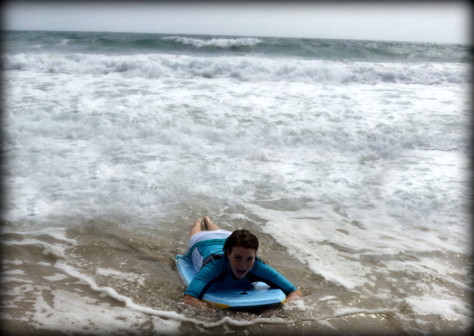 Perusing the local thrift store in L.A., we came across one of those finds that makes you dance right there in the aisle. A very nice boogie board. . . for about an eighth of the price of a new one! Baylie and I were so stoked we could hardly stand waiting the 10 minute drive to get to the beach!