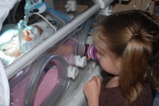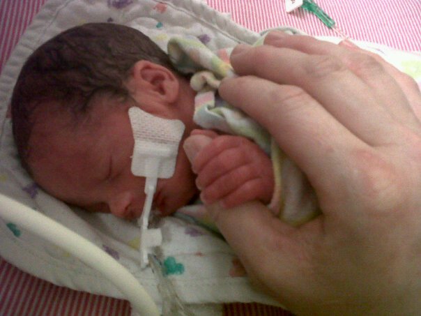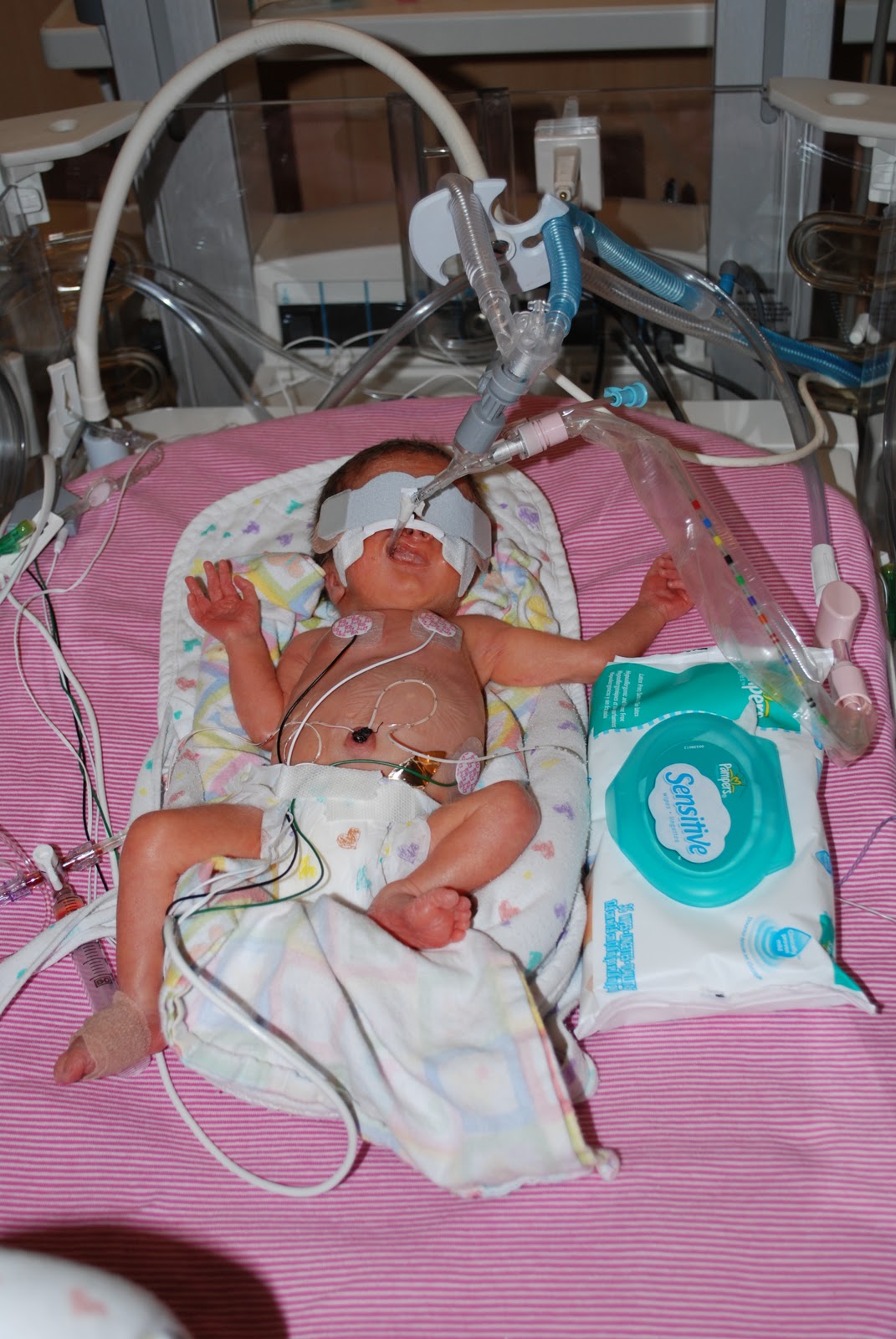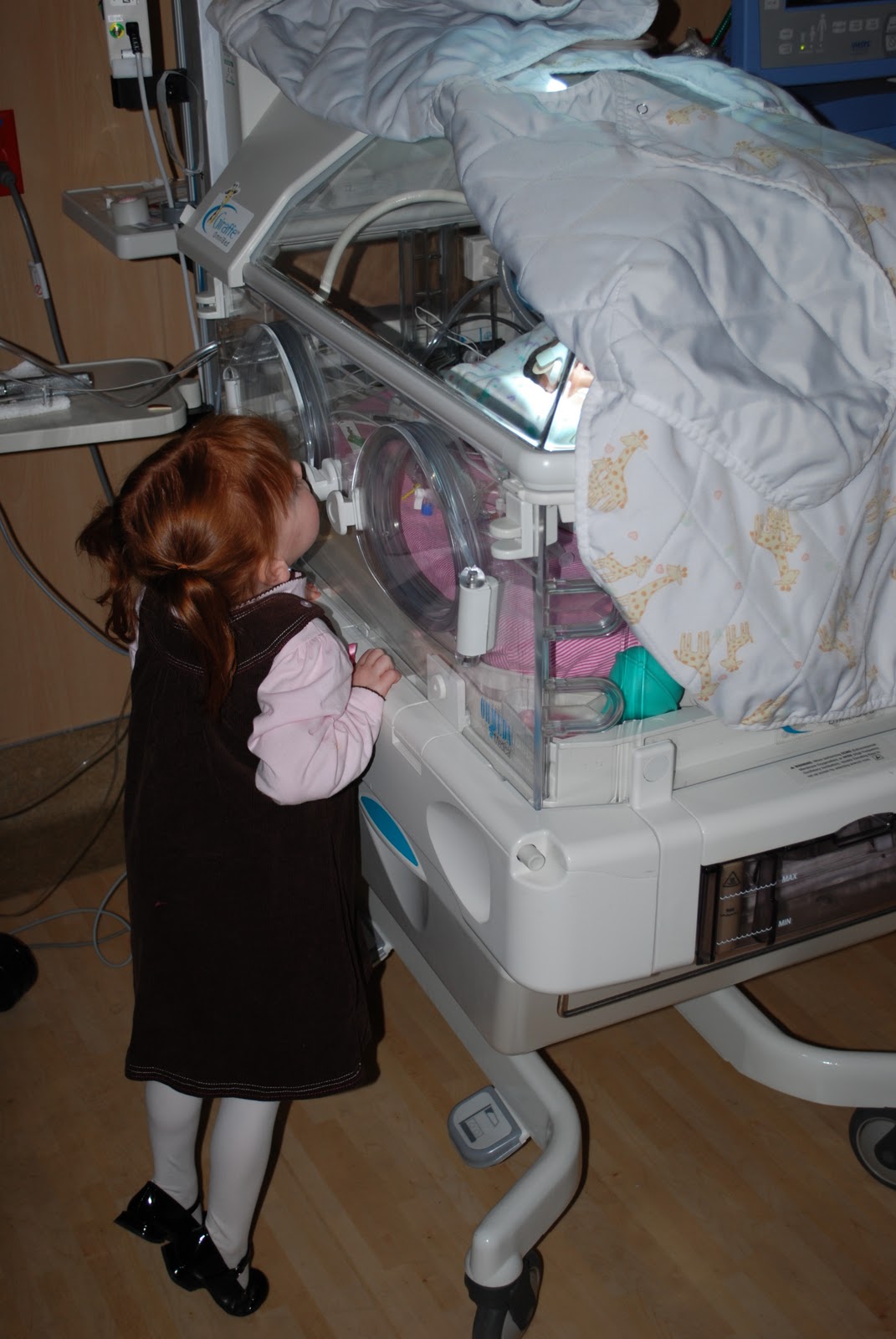I got to visit the NICU on the way to my room and got my first good look at my newest baby girl, Ellianna Grace, born at 8:10pm, weighing 3 pounds 5 ounces, and 16 inches long. She was all snuggled into her isolette, all kinds of tubes and wires helping her along.