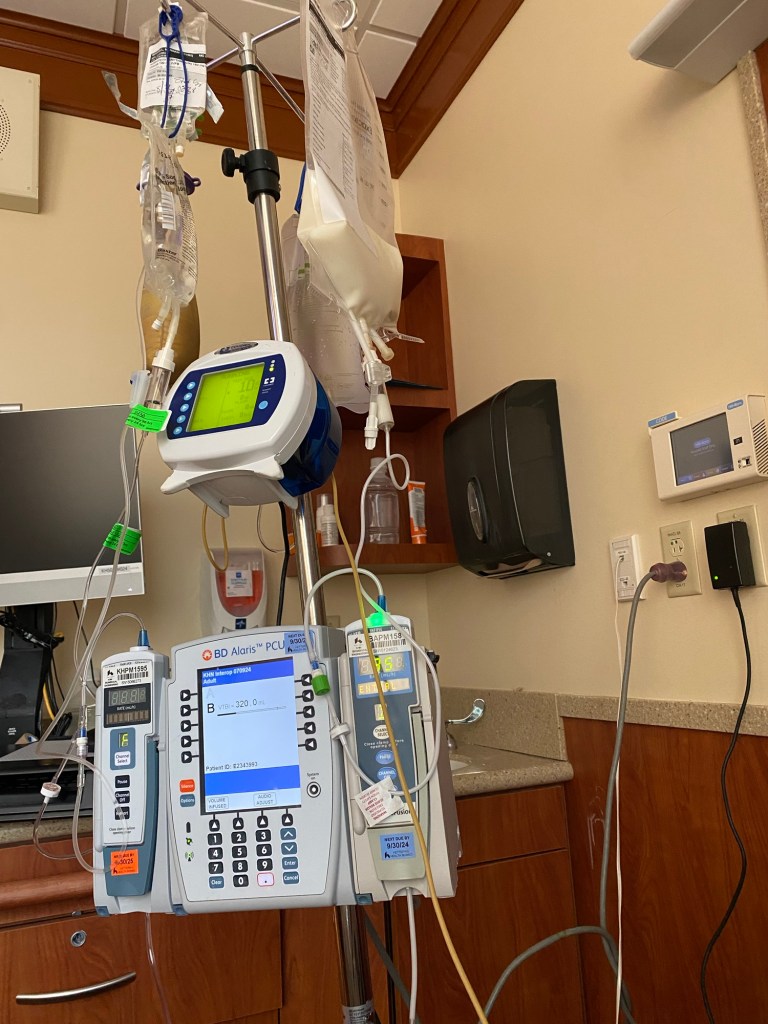 This past week has been scary and challenging. Saturday morning I started my IV infusion and it didn’t take long to realize I had an infection brewing in my port. By the time my wingman took a quick shower to get me to the ER I was wracked with shivering, puking, had pain everywhere, had spiked a fever, and my heart was thumping along over 130 while my blood pressure plummeted. It was a blessing we arrived at the hospital when they had just emptied 8 beds. As soon as they checked my vitals they called a sepsis alert and had me back in a room. Sepsis is one of the worst feelings to go through physically for me.